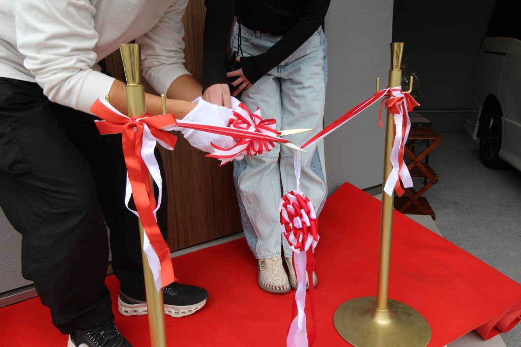お引渡しのセレモニーでは、ご夫婦にテープカットをしていただき
